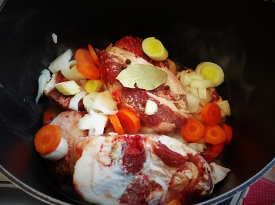 Köttbenen åkte ner i grytan…här ska kokas buljong…