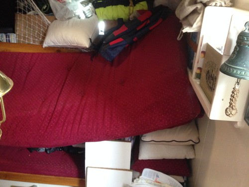 Allt som låg i facken under styrbordssoffan hamnade på soffan på styrbordssidan