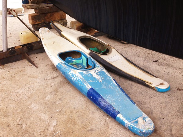 Och avslutningsvis så lovade vi avslöja vårt nästa vinterprojekt. Vi fann ett par kanoter liggandes i ett hörn av varvet. Till synes ägarlösa. Vi har under något års tid varit lite sugna på att paddla och vi har hållit lite span efter något lämpligt. Ja för er läsare så kanske inte många känner till att Kapten har förflutet inom roddsporten. Och inte sällan erbjöds paddling av Kajak och Kanadensare i våra hemmavatten under vår uppväxt. Nu när vi sprang på dessa så ställde vi frågan till Rafael om vi kunde få köpa kanoterna för en billig penning. -Köpa?! Undrade han. Han fortsatte; –Det är skräp, så vill ni städa dem så var så goda. -Men stoltsera inte med dem framför ögonen på de andra här på varvet…för det är alltid någon som har synpunkter på om man ger bort något, vi vill inte väcka någon avundsjuka…