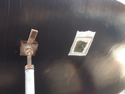 Medan Pimpsten skötte snacket på kontoret så passade Kapten på att måla fläckarna där pallningen stått. Nu återstår bara ett par lager Jotamastic och därefter ett lager sealer och sen bottenfärg. Woop woop!