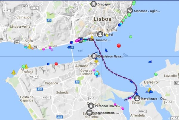Ja men nu så här i februari månad så kryllade det inte av några turister till synes…vi såg faktiskt inte till en enda flagg av utländsk härkomst. Nä endast portugisiska flaggor såg vi vaja. Så att det dök upp en svensk långseglare så här års i Sesimbra hör nog inte till vanligheterna.