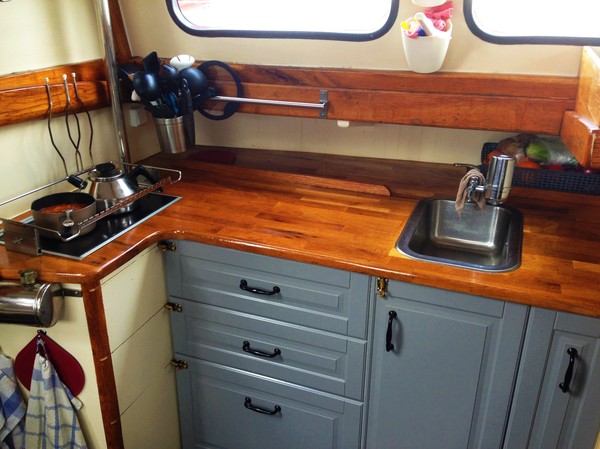 Styrman gillar att hålla sin köksbänk fri och emellanåt som här, olja in ekskivan…