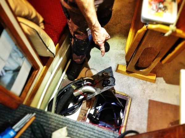 Så vi gjorde något annat knasigt. Något som sannolikt ingen annan skulle komma på en lördag eftermiddag och kväll. Vi öppnade dieseltanken och spanade ner i den kvarvarande dieseln genom manluckan. Vi har inte gjort rent dieseltanken på 2,5 år och nu innan vi ska tanka ny diesel här i Gibraltar så ville vi se om det låg alger eller skräp i tanken. Inga alger tack och lov, men lite skräp låg i botten som på sikt skulle kunna hota att sätta sig i något filter och orsaka dieselstopp. Sannolikt ingen fara alls, men Kaptens bakgrund som flygtekniker gör att han hela tiden arbetar förebyggande. Man gör ju så med flygplanen, annars skulle de dimpa ner titt som tätt.