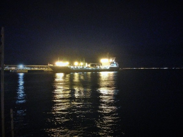 Så nära, men ändå så långt borta…här ligger oljetankern och lyser inbjudande med glad besättning ombord…