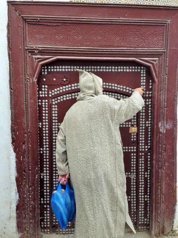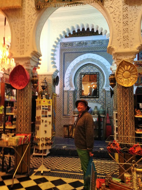 Därinne möttes vi av en massa fina ting; keramik, mattor, smycken, oljor och kryddor. En smått påstridig man försökte få oss att köpa något. Men vi ursäktade oss med att det får bli en annan gång, när vi inte kommer med båt. När vi tittat oss mätta på saker (och ni vet ju hur ointresserade vi är av pryl-konsumtion) så väntade Mohammed på oss utanför. Han frågade vad vi ville göra mera, kanske hitta ett ställe för att äta på?! Vi sa att vi ville gå och titta lite på egen hand. Och han nickade förstående och släppte oss direkt. Han förklarade hur vi skulle hitta ut ur medinan, vilket inte alls var självklart. Den kändes lite som en labyrint. En trevig man den där Mohammed, och vi hade nog tur. För det var många andra som försökte rycka i oss och som ville sälja saker. Mohammed hade själv en tid bott i Holland, så han visste kanske att möta oss på halva vägen, utan en massa tjat och trug. Tvärt om så berättade han en del om medinan, vilket vi var tacksamma för. Han fick inte ett öre för besväret, och det kändes inte heller som det var det han var ute efter.