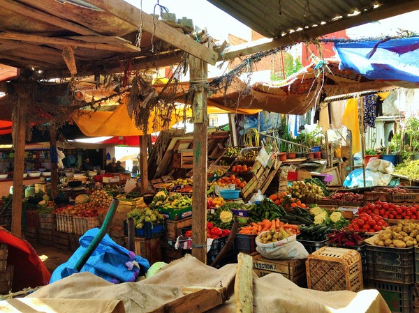 När läget för Wilma och magen var lugnt så tog vi oss en tur upp till byn. Vi fann marknadsplatsen där stånden stod tätt intill varandra. Vi såg att även här håller staden på att fräscha upp. Stora balkar hade börjat resas för att, vad vi tror, ska ge marknadsplatsen ett tak över stånden. Idag är det korrigerat plåttak och tygsjok som skyddar varorna från stark sol och regn.