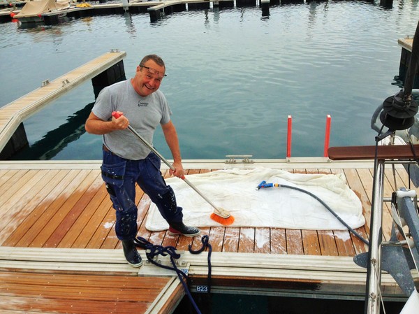 Kapten tar hand om sittbrunnsramen i väntan på rätta seglingsvindar…