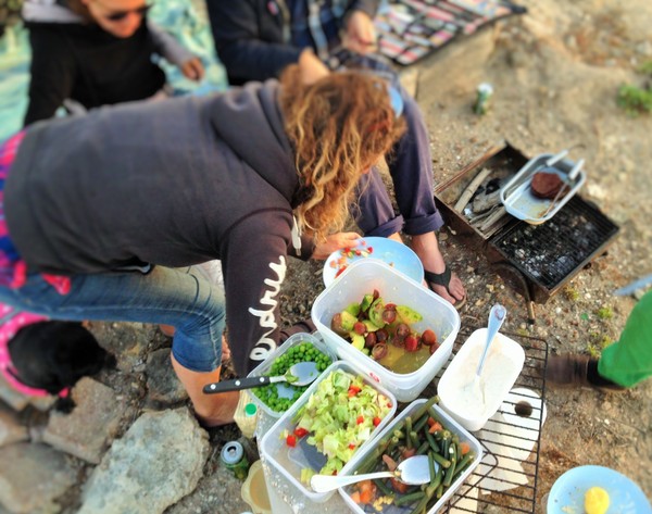 Skratt och gemenskap råder i vår lilla ankarvik. Och inte behöver man ens laga mat varje dag, då vi går runt hos varandra om kvällarna och turas om att tömma varandras kylskåp på godsaker…