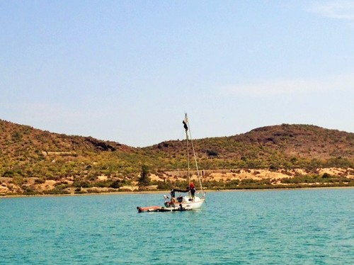 Kapten Betong har varit lite behjälplig på ett par av båtarna. Susans försegel är nu fixat, det går att rulla in och ut och hissa och hala. Riggen är också fixad, några vant var alldeles för slappa så nu är vajrarna korrekt spända och masten står stadigt. Ja och så några andra små ting, ack så viktiga också. Det är av ren vänlighet Kapten lägger sin, ja kanske faderliga, hand över Susans båt. Hon seglar ensam i en rätt liten båt. En riktigt tuff tjej, mycket tuffare än de flesta killar. Hon fixar och lagar en del själv…men det där supertekniska ögat som Kapten äger, där han hela tiden håller koll och noterar förändringar och svagheter, ja den fattas. (Ja den fattas ju för de flesta av oss). Så nu kändes det gott att kunna se över hennes båt så vi är trygga med att hon också kommer över den stora överfarten utan krånglande båt. Hon har ingen AIS men däremot kan hon ropa över radion, om vi andra inte kommit för långt ifrån vill säga.