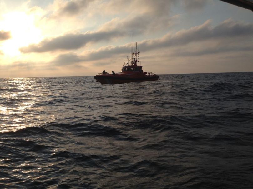 Nu uppstod en hel del väntan, vi turades om att köra Wilma i runda cirklar runt jollen. Och Kapten Betong som egentligen inte pratar franska alls, men uppenbarligen snappat upp en del under våra seglingar i fransktalande länder, lyckades få till en riktig ice-breaker. Han berättade för vår oinbjudne gäst att vi kommer från Sverige, från landet som har Zlatan Ibrahimovic. Detta får mannen att skina upp och le. Så de pratar om fotboll och Zlatan (och då ska man veta att Kapten inte är känd som någon stor fotbollskännare). En större ambassadör för vårt Sverige än Zlatan är svår att finna i en situation som denna. Vår oinbjudne gäst började nu slappna av lite mer och vi kände att förtroende för varandra började byggas. Vi kunde på så vis få ur mer information samt att han kunde lugna och informera sina vänner i jollen. Männen i jollen mådde fruktansvärt dåligt, tre män låg utslagna vilket tvingade deras kamrater att sitta upp längs med kanterna. De var alla sjösjuka och frös. De tiggde och bad om filtar men vi vågade inte gå för nära dem för såväl vår som deras säkerhet. Vi visste ju vid det här laget att de skulle klara sig då hjälp var på väg. Nu höll även solen på att gå upp och i den gryende morgonen så började livet kännas lättare.