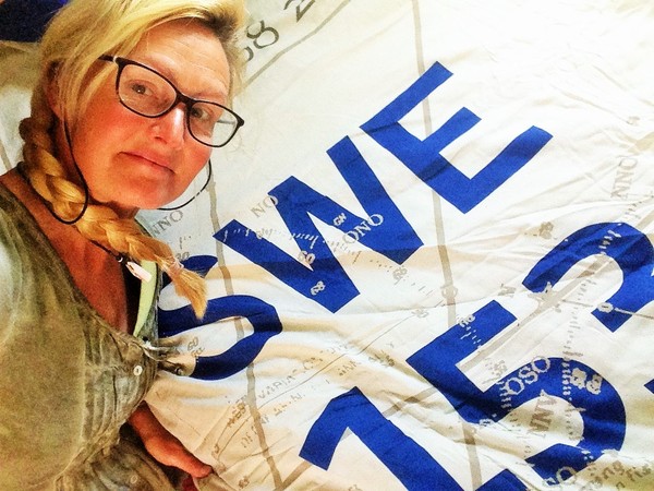 Nya lakan i sängarna…denna gång blev det de supermarina…bakgrund som sjökort och segelnummer mitt på… För den ovetande så kan vi berätta att vita lakan tenderar att bli lite gulaktiga med tiden hos långseglare…