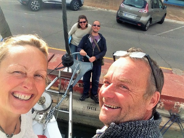 Ja och istället för att vår vän från Gibraltar dök upp, killen som himlar med ögonen ni vet. Så kom istället vännerna på båten Goodvibes hit igår. Vi ställde genast till med kramkalas och vi ska fortsätta umgås så länge vi ligger här. Vi lärde känna dem i Gibraltar också och vi har inte setts på ett par månader.