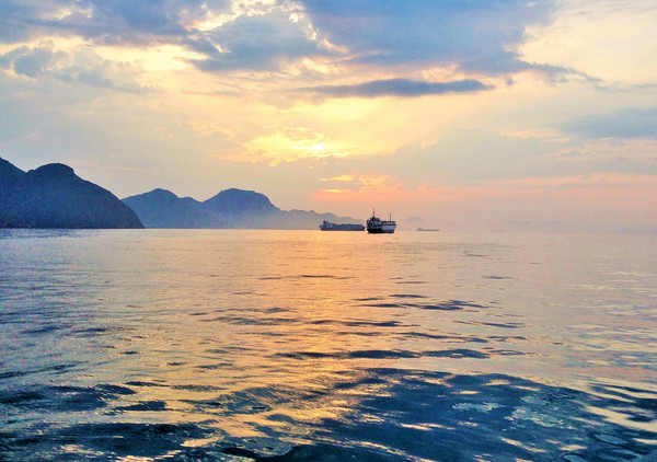Vi fann vår ankarvik, Cala Salitrona. Tre fria segelbåtar ute i den öde kvällen. Det klara vattnet gav oss sikt ända ner till botten. Och med trygghet visste vi att vårt ankare satt väl förankrat i sanden. Det blev en kväll i glada vänner lag på båten Goodvibes. Ja fattas bara annat till det namnet. Där njöt vi fram till midnatt där vi guppade stilla blott fem distans ifrån storstaden Cartagena. Inga ljus från land nådde oss. Allt svart omkring där de höga bergen blickade ner på oss. Bara våra egna lyktor sken upp glada ansikten och i bakgrunden ett par fartyg som liksom vi lagt sig i ro för vila.