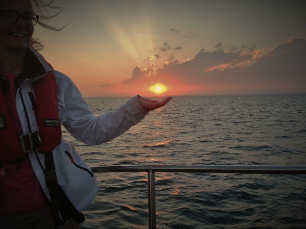 Jo hennes glädje gick inte att ta miste på. Att segla ensam tjej är rätt tufft. Och att segla ensam kan oavsett, vara rätt ensamt. Och att ensam ligga i en ankarvik utan någon annan båt i närheten när det ska blåsa upp till natten är nog dubbelt ensamt. Även vi hoppade jämfota av glädje vid åsynen av Susan. Så efter att vi ropat hej så frågade vi henne;