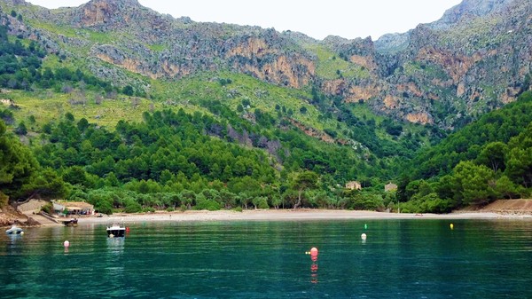 Bilden ovan är fångad bara några minuter efter det vi ankrat i vackra Cala Tuent. Efter en dags segling i fantastiskt väder, men utan nämvärda vindar så gick vi först in i Port de Sóller. Denna lilla fiskeby som Kapten besökte för 40 år sedan tillsammans med sin mamma, pappa, bror och farmor. De hade åkt till Sóller över en dag, tagit det gamla smalrälståget från Palma och njutit av utsikten över ön från ett av de antika tågvagnarna.