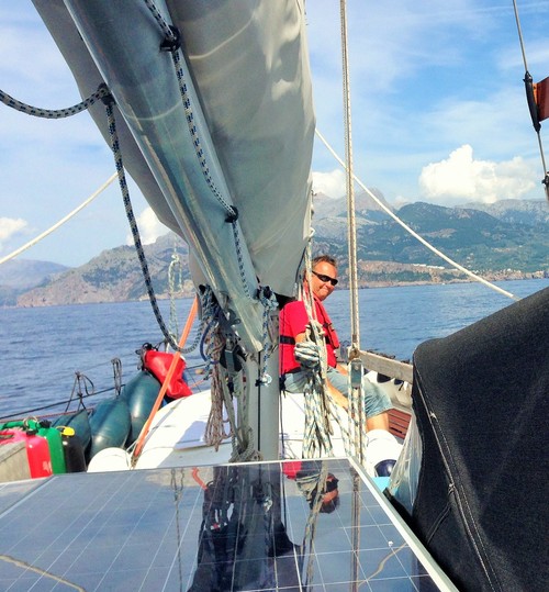 Kapten spanar in alla de platser han besökte för 40 år sedan…lite svårt att se så här från havet när man inte lägger till. Vi kom inte till Port de Sóller, annat än att vi vände i den trånga ankarviken där…