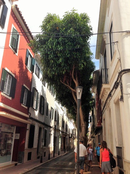 Upp på hojarna igen och sen bar det av till öns huvudort, Mahón. Det blev en tur tvärs över ön. Och där väntade oss en fantastisk mysig och fin liten stad. Vi letade upp ett ställe att äta lunch på och vi gick till den gamla fiskmarknaden där smårestauranger gemensamt låg samlade. Tapas i långa rader och spanska delikatesser löpte längs med hela den ena sidan av lokalen. Gästerna fick slå sig ned på den andra sidan, vid någon av de vintunnor som nu konverterats till matbord. Miljön var enastående och de tapas vi åt var gudomligt goda. Vi drack nyktert till, då vi ju var motorburna.