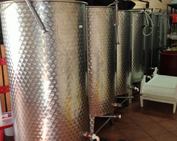Get- och fårmjölk förvaras i dessa tankar…eller om de innehöll vin…det framgick inte riktigt…