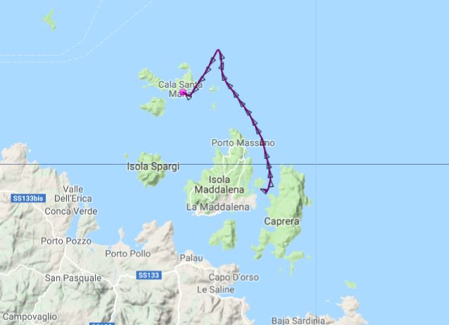 Vi har förflyttat oss. Till en annan del av naturreservatet La Maddalena. Nu ligger vi på nordvästra sidan av ögruppen. I denna vackra ankarvik som heter Santa Maria så torde ju båtnamnet TACOSHIP passa fint. Men det ligger ingen båt med det namnet här.