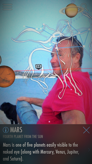 Vi leker med Sky View…en rolig app där man ser stjärnor, stjärnbilder, planeter och satelliter…även en Kapten kan komma med på bild ibland…