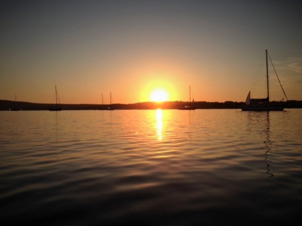 Vi blev bara liggandes en natt i den vik dit vi kommit efter den långa överseglingen. Med tvåhundra distans i ryggen så finlirar man inte direkt, inte vi i vart fall, utan man droppar ankaret på första bästa plats för lite vila och sömn. Att hitta de sagolika vikarna får bli en senare sak. Viken vi ankrat i var visserligen fin, men botten var väldigt hård. Två av våra vänner fick ankra om tre-fyra gånger innan de fick fäste. Kapten var ner och dök på vårt ankare och det hade spetsat sig ner en bit men ankaret ville inte gräva ner sig rejält. Inte ens när Kapten försökte hjälpa ankaret på traven och trycka ner det…sandbotten förblev stenhård och liknade mer en garageuppfart i Saltsjöbaden till sin struktur. Men vi satt fast i vart fall, vilket var viktigast så vi kunde få lite välbehövlig sömn. Vi kände dock flera av oss att vi gärna ville få ett bättre fäste inför den stundande blåsten som lovat göra sin entré. Vi bestämde därför att segla vidare redan dagen därpå.