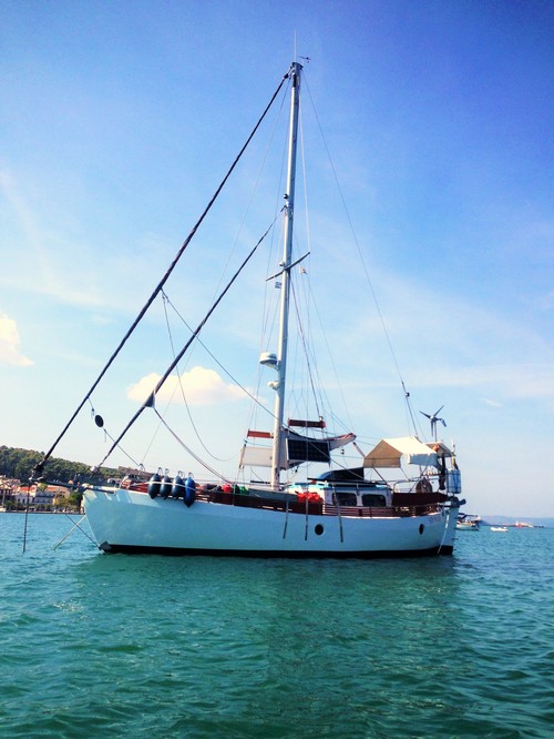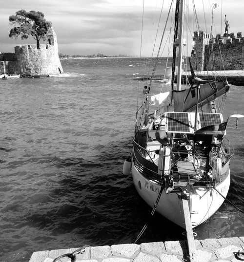 I vår värld så var inte vädret sådär galet illa som det kanske låter. Vi som är vikingar från norr verkar mer väderluttrade än grekerna till synes. Vi har dansat runt med Wilma betydligt värre än det här, något som kanske vännerna på Nicanders Båtvarv i Lysekil kan bekräfta. Då svängde Wilmas mast likt en dirigentpinne i Beethovens 5:a i vinterstormen 2016. Det är ett under att vi inte slet bort kajen från Lysekil.