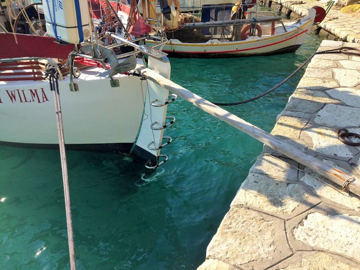 Efteråt diskuterade vi saken ombord, vi kände oss ju lite dumma som inte hade hört polisen kalla på oss. Wilmas Kapten menade att om polisen på allvar velat att vi skulle plocka bort våra förtöjningar i detta oväder, så hade Kapten krävt att polisen skulle skriva in detta i vår loggbok. Att det är på polisorder vi släpper förtöjningarna. För skulle det hända Wilma något när vi släppt vår säkerhetslina så hade vi möjligtvis kunnat skada såväl vår egen båt som fiskebåtarna intill med vårt tunga tonnage. Mot vårt försäkringsbolaget hade vi då velat påvisa att vi handlat på de grekiska myndigheternas begäran. Som båtägare får (och ska) du vidta nödvändiga åtgärder för att garantera säkerheten, även om det innebär att man drar linor kors och tvärs. Nöden har ingen lag och vi har markerat ut våra förtöjningar med fendrar så ingen kan missa dessa, allt enligt regelboken. Den andra båten var ju dessutom redan sjunken så det handlade bara om var de ville lyfta båten någonstans ifrån. I Sverige tror vi inte ens att man hade gjort ett lyft under pågående oväder, båten hade fått ligga där tills vädret lugnat sig. Nu löste det sig ändå och vi var nog i efterhand glada att vi inte hört polisen. Vi tänkte väl inte mer på det, utan vi gick på de luttrade fiskegubbarnas uttalande. De tyckte vi hade handlat klokt och rätt…