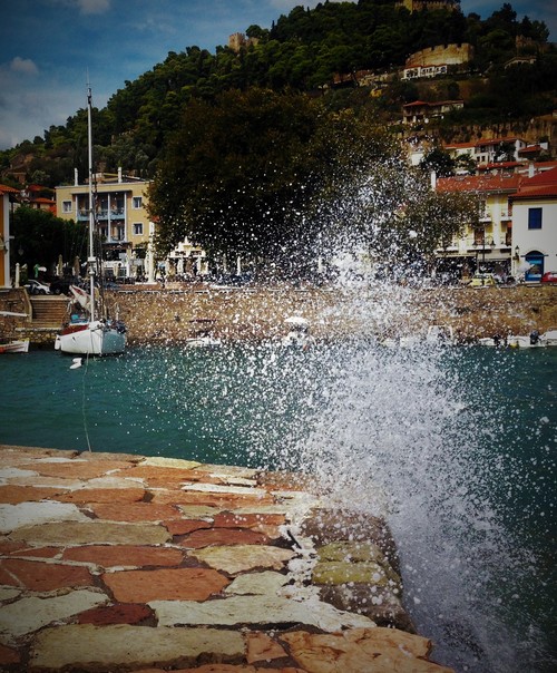 Ooops! Det var ord och inga visor. Det lät som ljuv musik i våra öron, lite skillnad mot det öronkladd vi uppenbart lidit av under morgonen då vi inte hört. Vice Borgmästaren berättade att det har inte varit sånt här oväder i deras hamnbassäng på 10-12 år då de normalt ligger väl skyddade i Korintiska viken. Vice Borgmästaren sa vidare att det är en ära för staden ha besökare som oss, som seglat ända från Sverige och självklart så bjuder staden på vatten och elektricitet, det är bara att fritt använda. Han visade oss vart vi hittar eluttaget och vattenposten (vilka vi redan funnit tidigare där vi smugit med vår användning hö hö hö…)