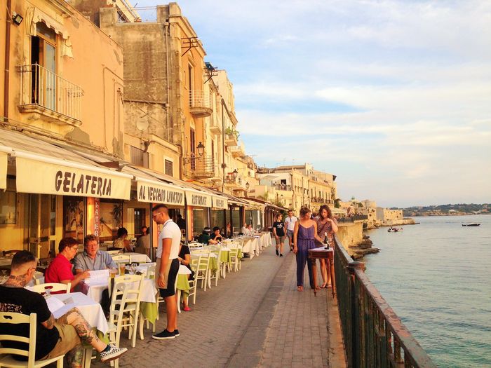 Syracusa är en synnerligen mysig stad. Den gamla stadsdelen som heter Ortigia har anor från 700-talet före kristus och den finns med på UNESCOS världsarvslista. Den gamla stadsdelen är fylld av smala gator där vackra gatulampor lyser upp gränderna och små restauranger trängs i varje ledig hörna.