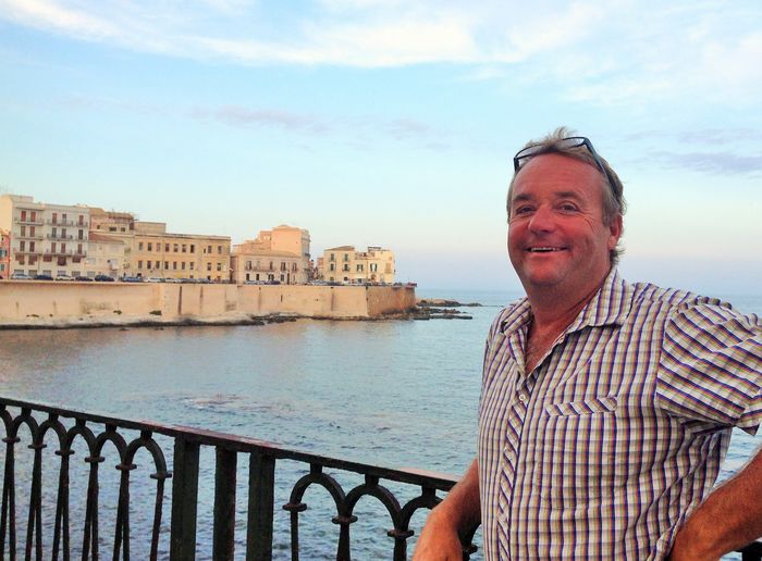 Före vi slog oss ner vid en av stadens små restauranger så gick vi en lång promenad och tittade på folkvimlet. Hela stan kryllade av promenerande människor, inte sällan hand i hand och med förälskelse i blicken. Jo detta är en romantisk stad där rekvisitan, arkitekturen på de gamla husen med ornament och de vackra vyerna ut över havet skulle kunna få vem som helt att bli religiös, eller i vart fall förälskad. Här ryms ett stycke stor historia då Syracusa är födelsestad åt såväl Santa Lucia som vetenskapsmannen Arkimedes.