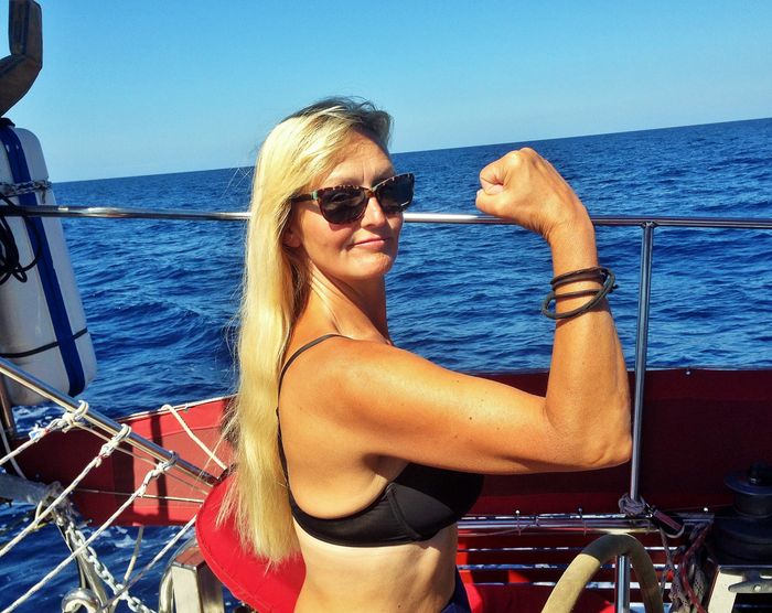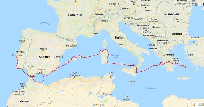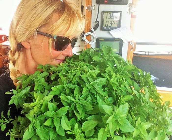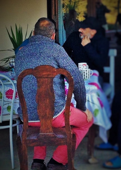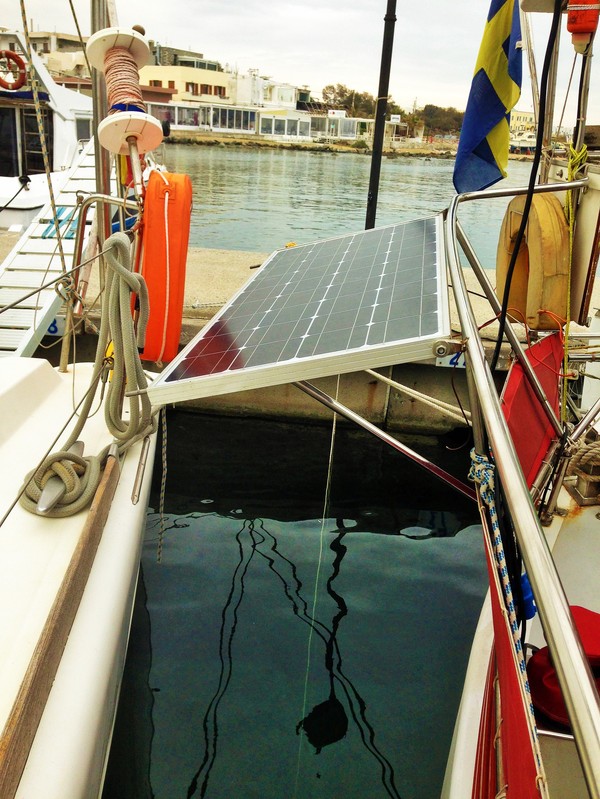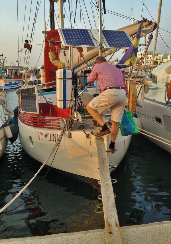 Nu har vi varit här såpass länge att vi blivit lite bekanta med en del ortsbor. Vi mötte killen som jobbar i båttillbehörsaffären, han kom gåendes finklädd tillsammans med sin familj. Vi skakade hand och växlade några ord. Sen fann vi oss ett ledigt bord där vi tog oss en fika. Vädret har under de senaste dagarna varit det bästa tänkbara. Sydliga varma vindar, klarblå himmel och 22-23 grader.