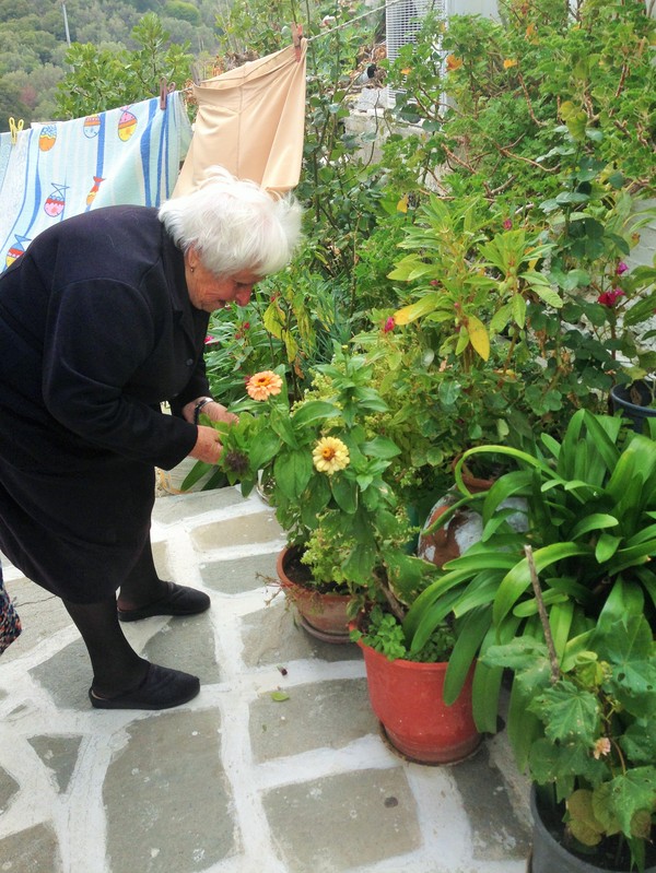 När klockan närmade sig halv två på eftermiddagen gick vi bort till korsningen där bageriet ligger. Vi hade bestämt träff med Jackie, den irländska tjejen som bott här på ön i princip halva sitt liv. Gift med en grekisk man och med barn så bor de uppe bland bergen. Vi hade blivit inbjudna på BBQ hemma hos dem.