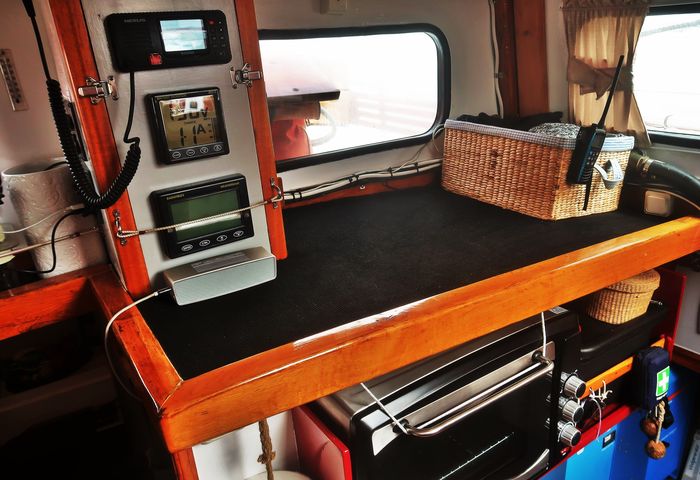 Hela tiden utmanas vi mellan att göra båten mysig och hemtrevlig i kombination med att den ska vara funktionell och kunna vara ute på havet samt inrymma en del tekniska prylar och elektronik (som aldrig tillför utseendet något positivt i vårt tycke). Vi är dessutom rätt sparsmakade som personer och gillar inte att det står en massa prylar framme, vi vill ha rena ytor och gott om plats. Något av ett önsketänkande då bostaden håller måtten 10×4 meter typ.