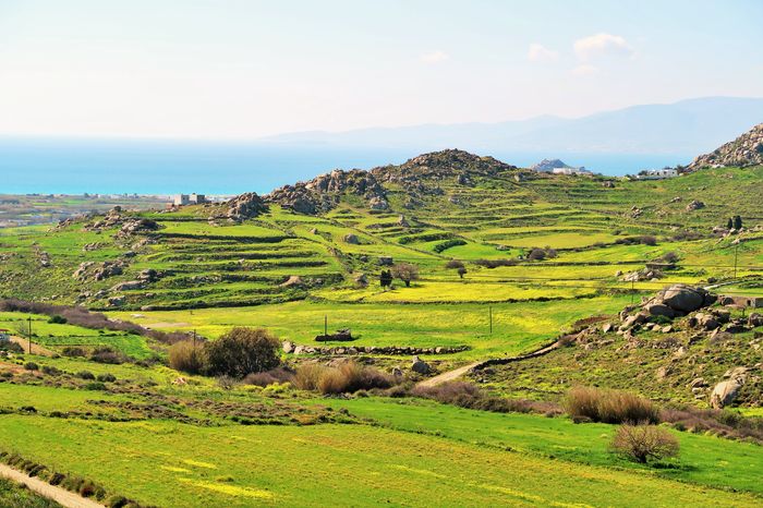 Naxos är mer bördigt än de andra öarna i Kykladerna och här odlas oliver, vindruvor, fikon, citrus och potatis bland annat. På den södra sidan finner vi många bondgårdar där flertalet har får, getter och nötkreatur.