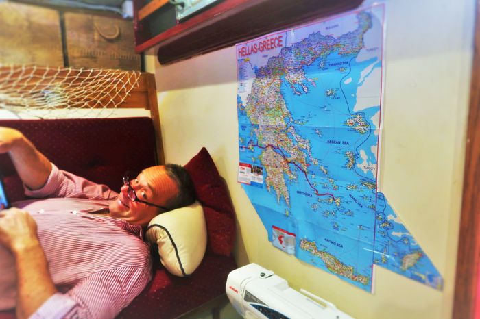 Vi har köpt en karta över Grekland och satt upp den på väggen i salongen. Öarna är många och det är lätt att i efterhand glömma alla fina platser vi besökt, därför drar vi ett rött streck dithän vi seglar. Vi tror även kartan och vår seglingsrutt kan ge våra läsare en god överblick, så inte ni bara får höra en massa namn på grekiska öar och inte veta vart de ligger.