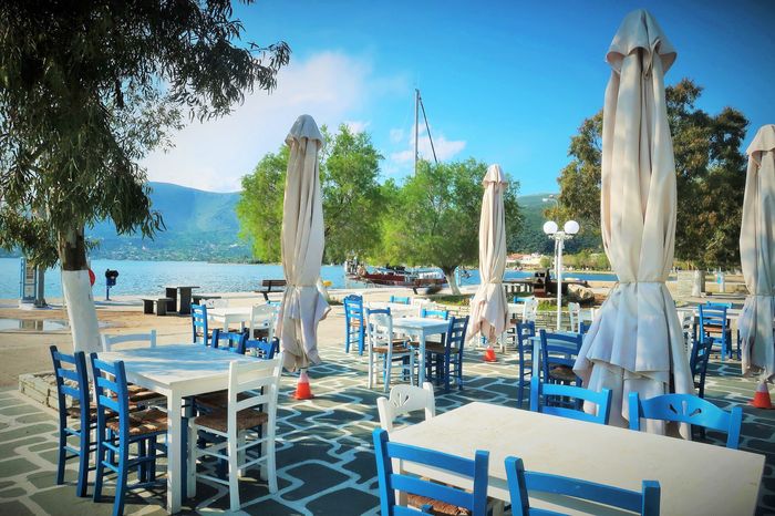 Vi ligger mitt i den lilla fiskebyn Panagia på Greklands näst största ö Evia (Euboia även kallad). Stadskajen är kort, endast tre båtar av Wilmas storlek ryms här. Under högsäsong måste gästbåtarna lägga till med stäven/aktern för att få plats med några ytterligare båtar. Rätt ofta kostar det inget att ligga i grekiska hamnar, men här dök det faktiskt upp en kvinna som tog betalt. Vi ligger här för blygsamma tjugofem kronor per dygn och då fick vi ett välskrivet kvitto på vår betalning. Det är länge sedan vi haft förmånen att kunna ligga längs med en kaj och ha bekvämligheten att lätt kunna hoppa i land, så vi betalade gladeligen. Men hade det i våra ögon varit för dyrt att ligga här så hade vi gärna ankrat i viken, den ligger väl skyddad för vind från de flesta väderstreck. Som en lång tarm går viken djupt in i landskapet och avslutas med Panagia fiskeby och en kilometer lång sandstrand.