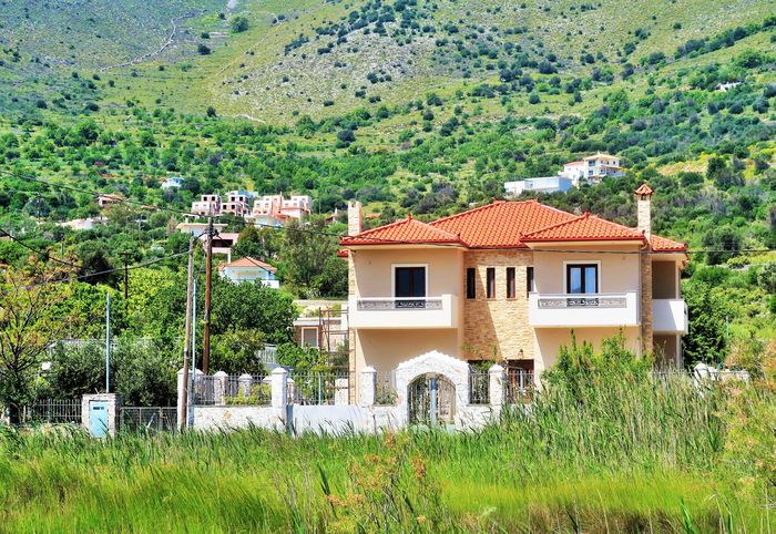 Att vi kommit längre norrut i Grekland ser vi inte bara på våra navigationsinstrument, utan även på att omgivningarna har ändrat karaktär. Ett bördigare landskap råder här och husen vi möts av är inte i samma utsträckning de typiska vitputsade fasaderna med de blåmålade trädetaljerna, även om de förekommer. Här har husen terrakotta-tak.