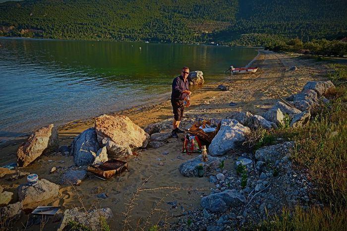 Sagt och gjort, vi sjösatte jollen och tog med oss några tomma dunkar. Vattnet visade sig vara iskallt, fräscht och gott så vi fyllde på i flera omgångar och maxade Wilmas tankar och slutligen alla dunkar. Nu har vi gott och väl vatten för tre veckor igen. Att ”leta vatten” är något vi verkligen uppskattar och Grekland är så här långt vansinnigt tacksamt.