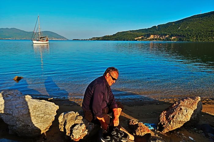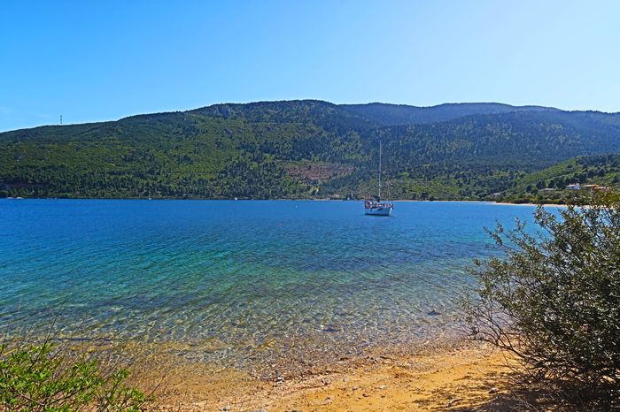 Efter det vi lämnade Chalkis har vi inte mött en endaste människa, vi har bara sett mänskliga varelser på avstånd och knappt det. Wilma har tagit sig fram i den grekiska blå sagovärlden och på nätterna har vi funnit ensliga vikar där vi droppat ankaret för lite god sömn. Första natten stannade vi på fastlandssidan dryga tjugo distans från Chalkis. Den andra natten seglade vi sjutton distans rakt norrut.