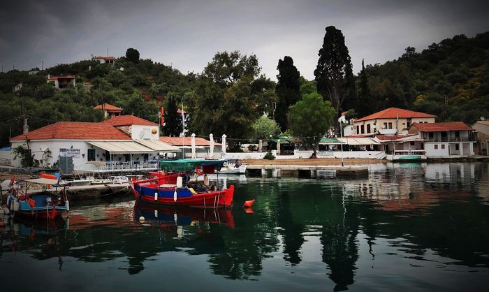 Det finns inga bilar på ön, inga riktiga vägar och man promenerar över ön på mindre än en halvtimme. Från vår ankarvik tog vi jollen in till stranden och vi vandrade upp för kullen där vi fann en bredare stig som ledde oss till den lilla byn. Husen är få till antal och här finns ingen mataffär, dock en liten hamn samt några trivsamma tavernor precis intill vattnet. Till ön Paleo Trikeri kommer man med egen båt eller så får man ta en vattentaxi från yttersta spetsen av fastlandet.
