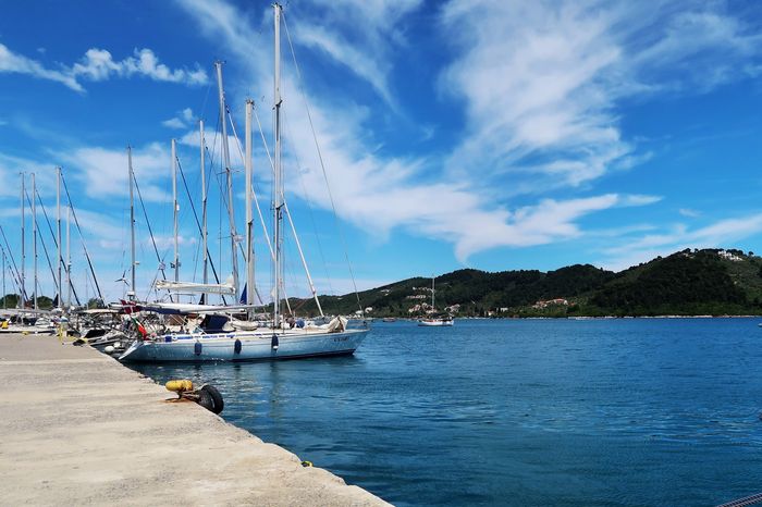 Tyvärr kändes det inte så välkommet trots att det finns en ankringssymbol i sjökortet. Vi fick höra att flytbryggan varit till för gästande båtar, men att den nu inte längre var brukbar på grund av alla skador som uppstått av väder, vind och tunga båtar. Och i sann grekisk stil så lagas och renoveras ingenting heller – så flytbryggan får ligga kvar som ett tråkigt monument och en påminnelse att det en gång i tiden funnit plats även för gästande segelbåtar här.