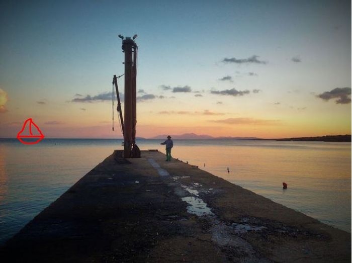 Vi hade tidigare samma dag lämnat den vackra ön Fournoi på morgonen och efter 55 distans så kunde vi droppa ankaret i en vik på Naxos. För er som följt oss så vet ni att vi tillbringade vintern där och att vi lämnade Naxos i början av april tidigare i år. Nu la vi oss på den östra sidan av ön i lä för de nordvästliga vindarna. Det kändes skoj att vara tillbaka, som att vi knutit säcken på något vis. Extra skoj var det att vi varit vid viken förut. I vintras hyrde vi bil och tillsammans med vänner och då besökte vi denna kustbyn som lystrar till namnet Moutsouna. Styrman Pimpsten fotograferade den gången Kapten Betong ute på kajpiren där man förr i tiden skeppade ut smärgel (kornen som sitter på slippapper heter så – smärgel). Nu fick vi se platsen från ett tvärtom-perspektiv, från havet. Vi kände oss lite sugna på att sjösätta jollen och ta oss iland. Men vi var rätt trötta efter en hård dags segling så vi nöjde oss med att ta ett dopp sen fixa lite mat innan det var dags att krypa till kojs. Det var utlovat än starkare meltemi inom kort och vi ville hinna längre österut till en bättre skyddade vik och plats innan dess. Vi hade tagit sikte på den lilla ön Sifnos, 45 nautiska mil öster om Naxos.