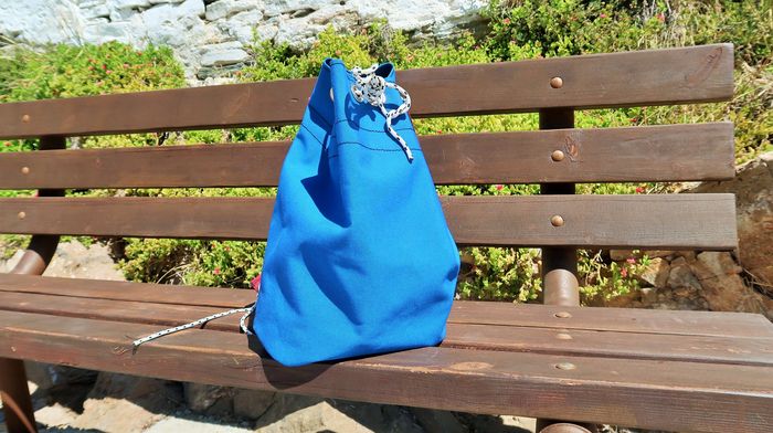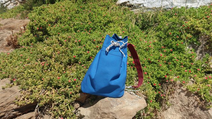 När vi vinkat hejdå så rodde Kapten in till fiskebåtskajen där vi la till. Väl framme så fiskade Kapten upp nästa gåva, en ryggsäck! I egen design hade Kapten sytt en ryggsäck till sin fru. Snygg, praktisk och slitstark där han arbetat med den i små stunder när inte Styrman märkt något, och nu var den klar. Det är KÄRLEK konstaterade Styrman, att få en ryggsäck som ens make har sytt själv. Och så gav hon sin man en stor puss som tack. Ryggsäcken invigdes direkt och den fick följa med på ölrundan. Ja, sån är han, Kapten Betong. Han hjälper, fixar och lagar åt andra samtidigt som han sällan själv ber någon annan om hjälp. Man tar honom lätt för givet.