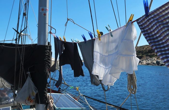 Även vi har tvättdag ombord, precis som båtgrannen…