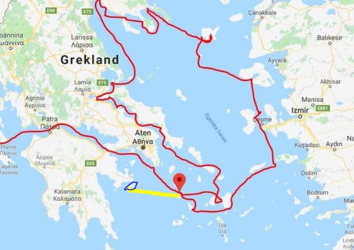 Vi är på ön Hydra, den senaste seglatsen på 55 distans visas med gult streck. Mer information om denna vackra ö kommer i nästa inlägg.
