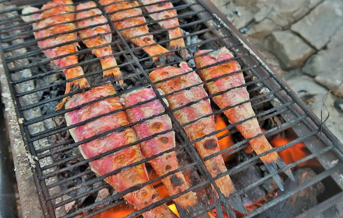 Red mullet…Kapten har rensat och kryddat upp med salt och peppar…