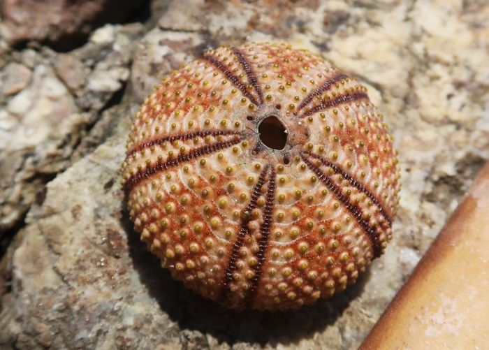 Skalet från havets igelkott, sjöborren. Man finner dem nere på havsbotten i allsköns olika färger…