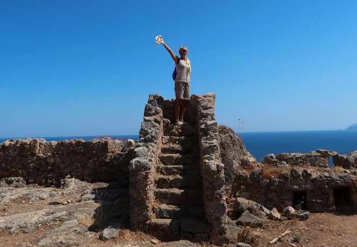 Det bokstavligen kittlade i magen när vi seglade in i Monemvasia. Vänner hade berättat om denna historiska plats där alla samstämmigt sagt oss att göra stopp och inte segla förbi. Seglingen från Gerakas till Monemvasia var kort, endast ett par timmar i snäll sjö och fina jämna vindar, en liten revansch från förrförra seglingen då vi hade stökig sjö och svall från två olika håll. Nu sken solen medan vi seglade längs med den södra sidan av den berömda klippan. Klippan som förvisso inte är lika känd som Gibraltar, men ändå så pass lik att det är det första man associerar till. Inte så konstigt då att Monemvasias klippa går under smeknamnet Gibraltar of the East eller The Rock. Men här tar väl kanske likheterna slut.