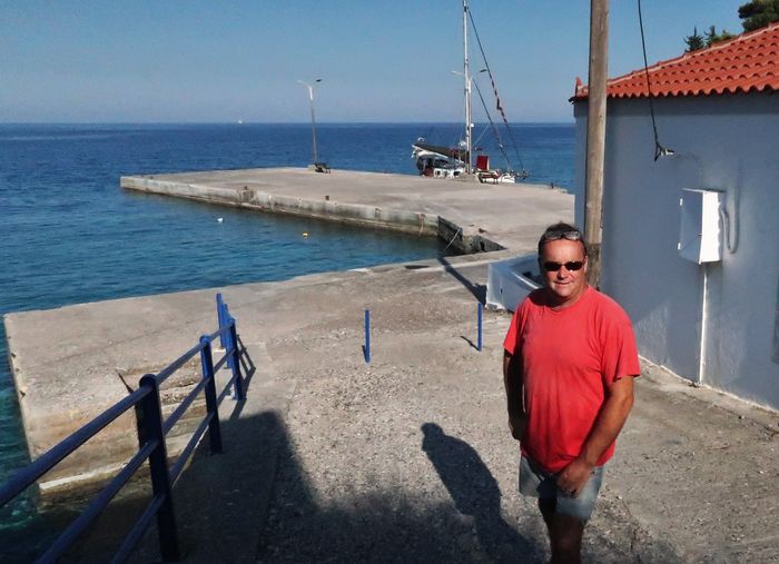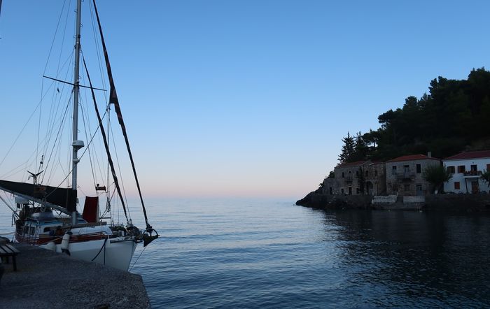 Så småningom backade en av segelbåtarna ut från den lilla stenkajen i Kyparissi och försvann. Vi fick då chansen att knipa platsen och det kändes lyxigt att för en gångs skull ligga långsides intill en stadig kaj, gratis dessutom.