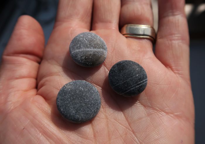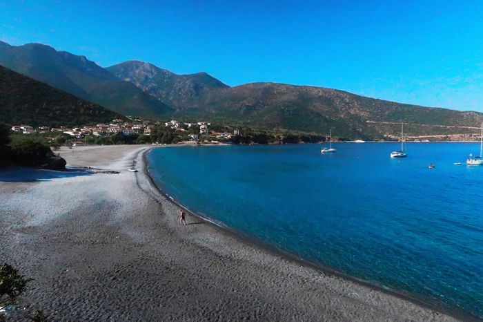 Innan vi gick tillbaka till Wilma så passerade vi badstranden. Stranden bestod av perfekta rundslipade stenar i skalorna grått, vitt och svart. De liknade nonstops, ni vet godiset som man lägger på pepparkakshusets tak och vi blev helt fascinerade av naturens förmåga till perfektionism. Med ett svalkande bad, temperaturen har under de senaste dagarna rasat ner till tjugosex grader (jo vi har varit bortskämda, vi vet) så avslutade vi med en efterlängtad sötvattendusch. Kyparissi håller med dusch till sina badgäster vilket är något vi seglare gärna tar fasta på.